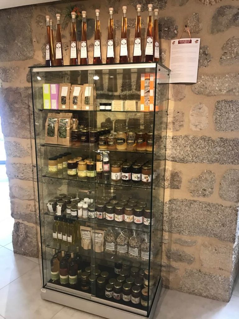 Produits « boutique » sous vitrine au Malzieu-Ville