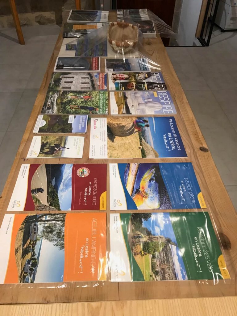 Brochures touristiques sous protection plastique au Malzieu